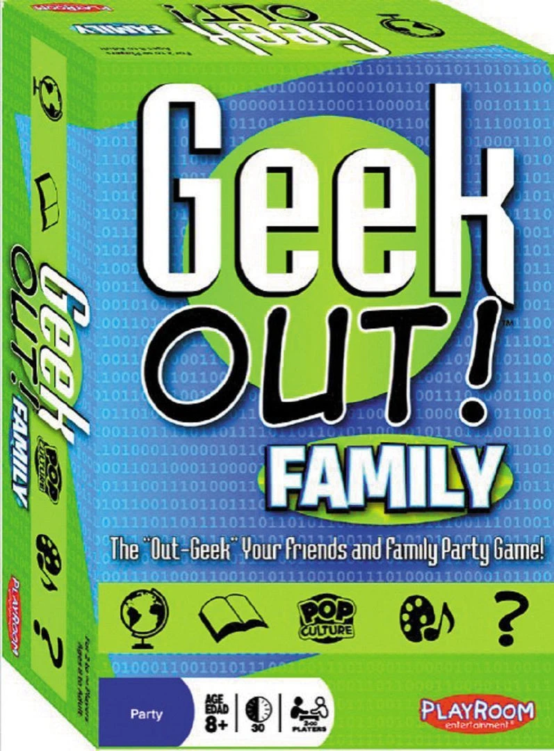 The award-winning geek trivia party game has taken on a new twist in this brand-new Geek Out!™ Family Edition! Level the playing field with topics the whole family geeks out over! This edition uses the same bidding mechanic made popular in the original Geek Out!, but also includes a Gameboard and features topics in categories like Science, Music, History, Pop Culture, and more!