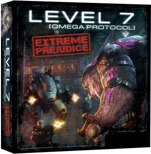 Extreme Prejudice is an adrenaline-fueled expansion for LEVEL 7 [OMEGA PROTOCOL], a semi-cooperative board game of miniatures-based tactical combat for 2–6 players. Includes five new scenarios, three new enemy types, and two new commandos.