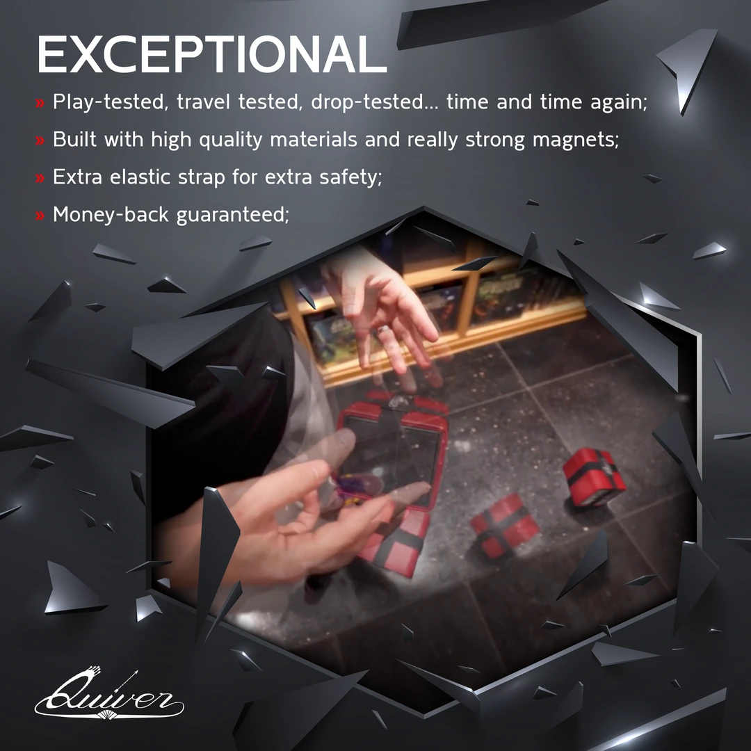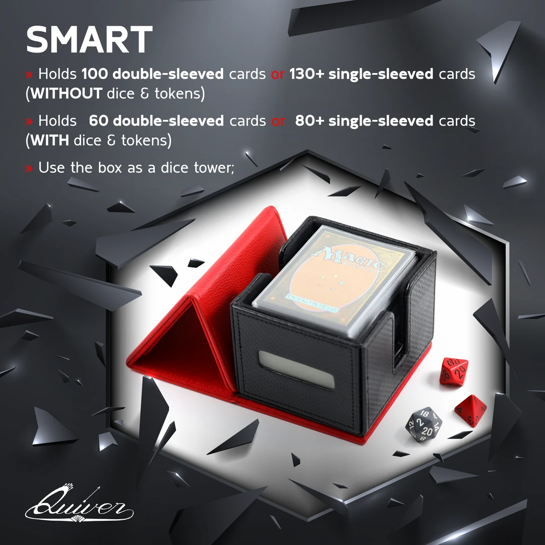 Citadel Deck Block lets you organize, protect and carry your cards, dice, tokens and coins in a smart and secure way. This versatile and dazzling deck box holds Magic: The Gathering, Pokémon, KeyForge, Yu-Gi-Oh, Dragon Ball Z, Star Realms, Arkham Horror: The card game, Star Wars Destiny, Exploding Kittens and many others.