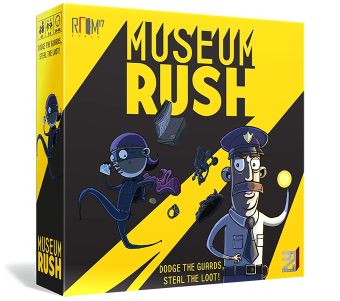 Museum Rush is a competitive thieving game in which players race against time to steal treasures from a museum while avoiding cameras, guards, and greedy rivals. Luckily these dastardly robbers have an array of items to help them get the better of the guards and their fellow thieves, such as sultry Llamas, mighty Underwear and the high-tech Cardboard Box.