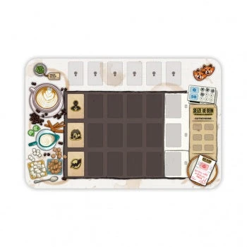 This add-on is for a large, linen canvas play mat (approximately 60cm x 40cm in size). The play mat will include a full-color print depicting the theme of the game with areas of the table depicted for setup.