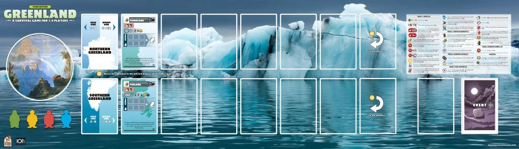 Double-sided, one side for Neanderthal, and the other for Greenland. Contains play aids.