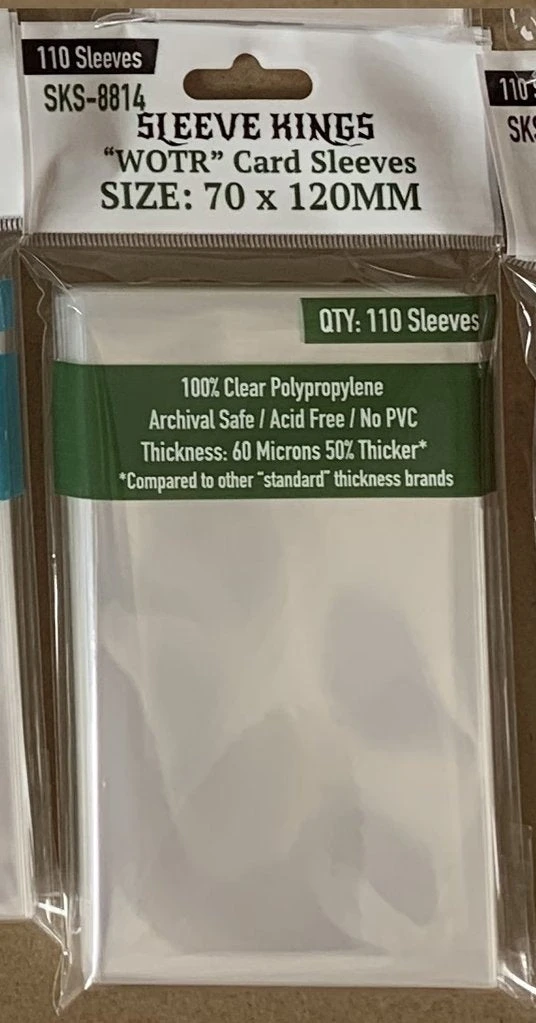 These are sized to fit “”WOTR”” Card (70x120mm).