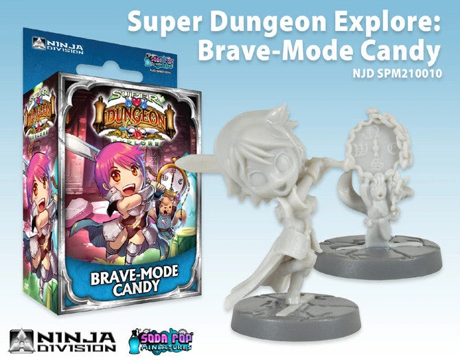 Brave-Mode Candy also replaces Super Dungeon Explore: Candy and Cola from the first edition of Super Dungeon Explore and contains a hero card for Soda Master Candy, which can be used with either model.