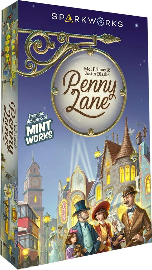 Penny Lane is a worker placement game for 2-5 players in which players compete to build the most prosperous city avenue. You can build residences, shops like the Confectioners, and attractions like the Penny Arcade! You’ll also need to employ citizens to generate income for your lane. Penny Lane also has a tableau-building component, where players can get bonus points or currency by aligning their buildings with different “links.”