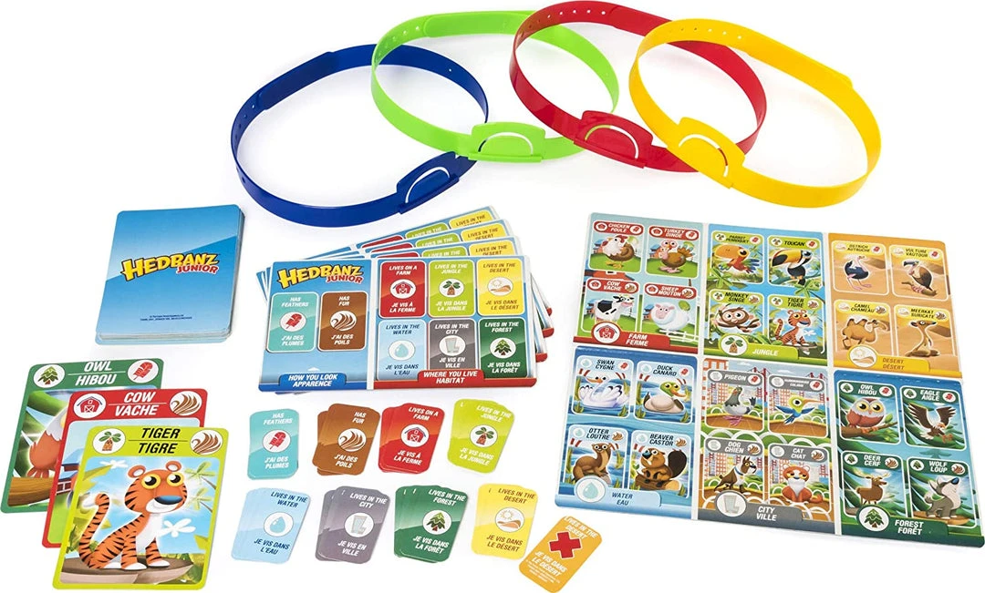 - Younger kids can now join in the excitement with HedBanz Jr.! With an animal theme, the hilarious quick question game of “What animal am I?” is available for players age 5 years and up.