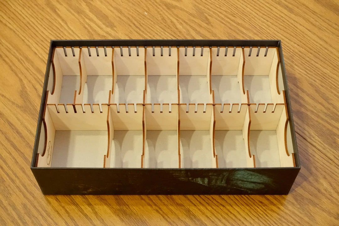 Our Ascension Organizer is compatible with Ascension by Stone Blade Entertainment. Â This organizer fits larger boxes such as those that come with Chronicle of the Godslayer and Storm of Souls.
