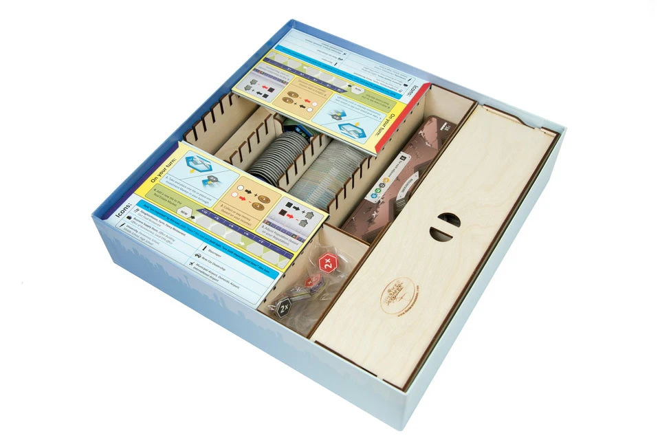 Is your Suburbia box an urban disaster? Â If so, you need our Suburbia Box organizer! Â This organizer holds the base game and all expansions making setup and tear-down a breeze. Â Our removable token tray has a lid to keep all the tokens in place. Â The kit comes with 16 adjustable dividers for organizing your hex tiles.