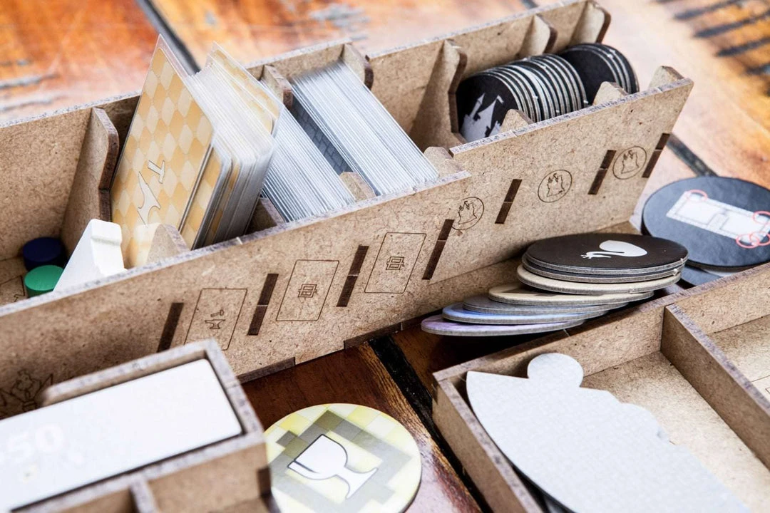 Organizer compatible with Castles of Mad King Ludwig (base game or with Secrets expansion). This organizer is suitable alternatively for just the base game or base game + expansion.