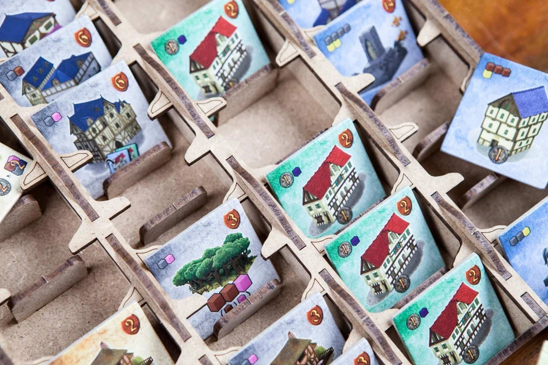 • 1x building tiles box. Specific space for each tile and arranged housings for better use and visibility during gameplay;