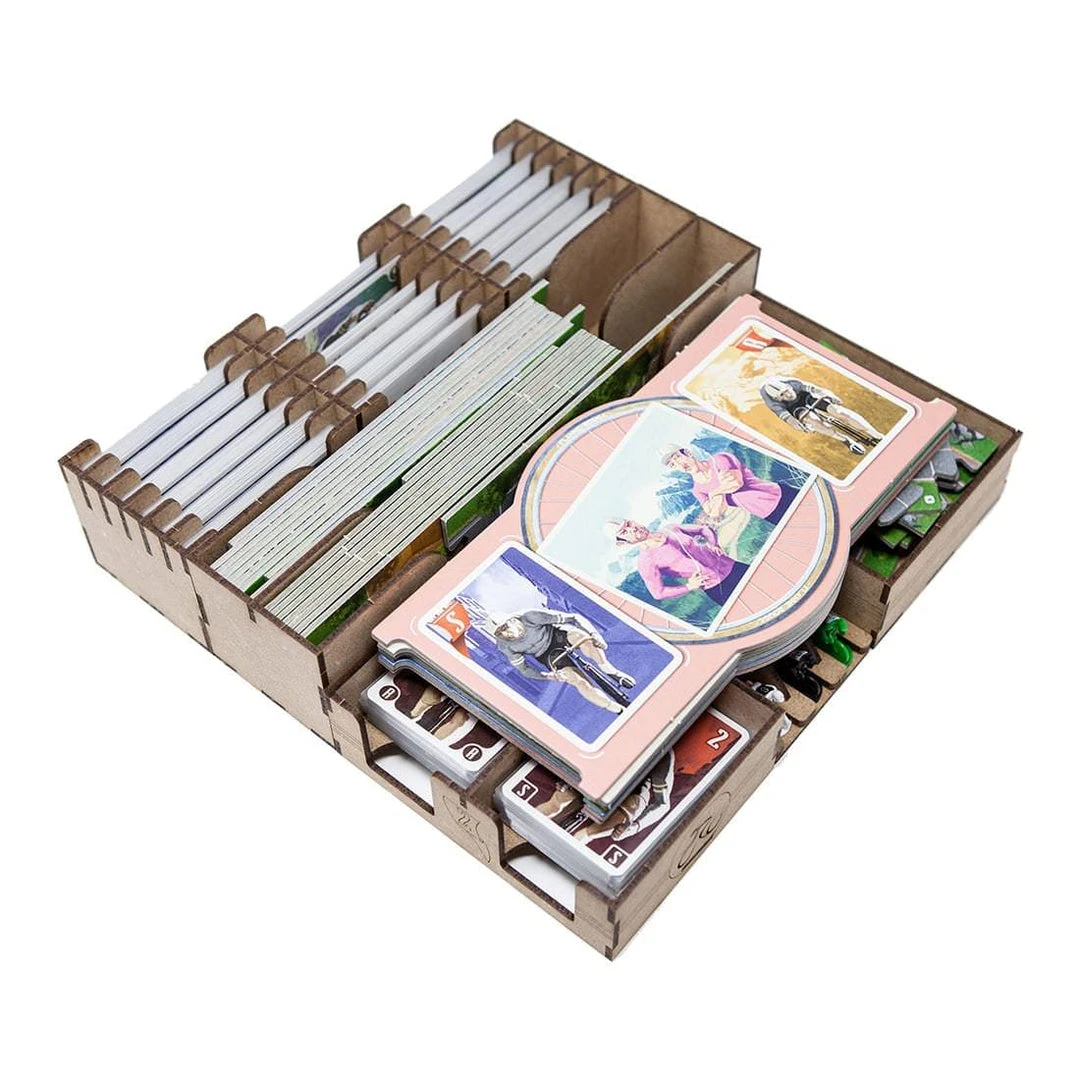 Designed to fit into the game box. Designed for both sleeved and unsleeved cards.