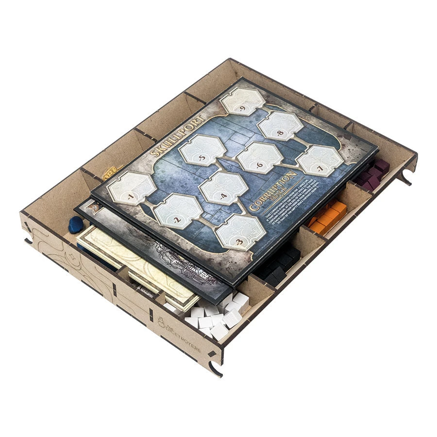 Organizer compatible with Lords of Waterdeep (base game or with Scoundrels of Skullport exp). This organizer is suitable alternatively for just the base game or base game + expansion.