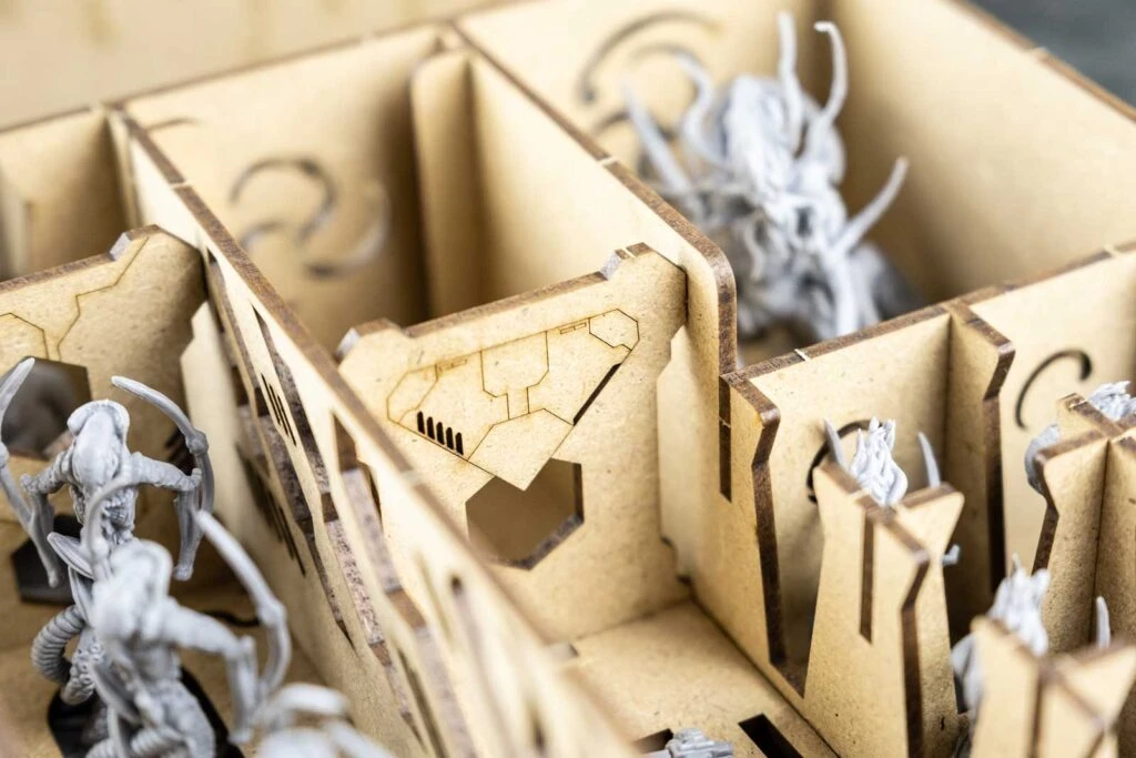 - 1x miniature box with slots for Void Seekers, turrets, catonaut;