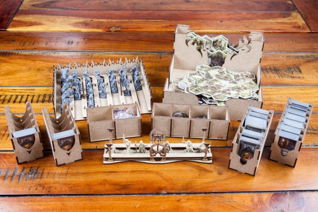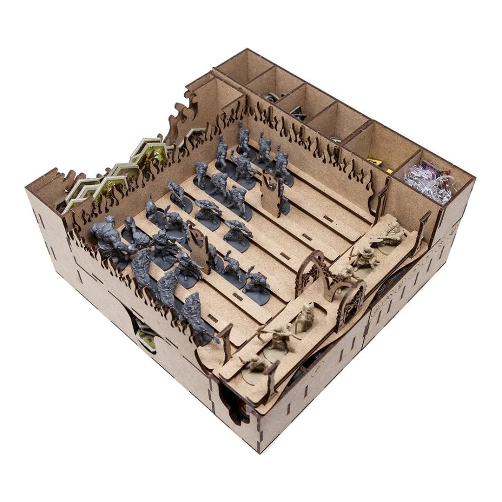 Organizer compatible with The Lord of the Rings: Journeys in Middle-earth. Additional space for miniatures, cards, tokens, map tiles and player boards.