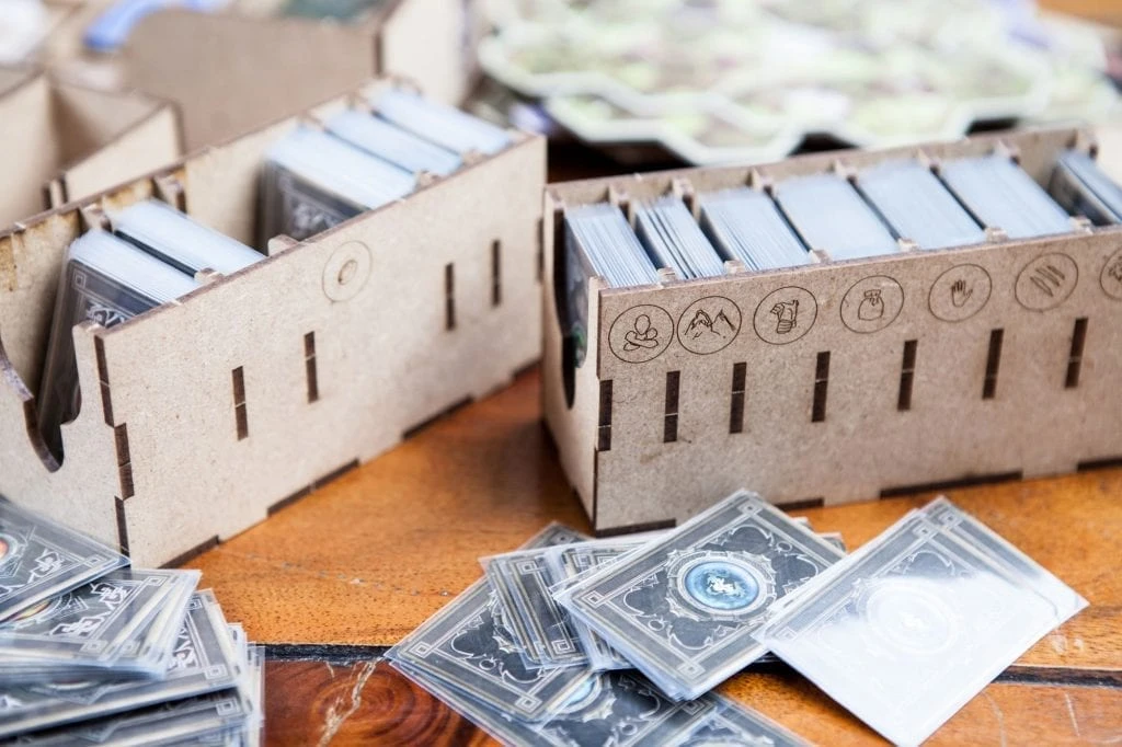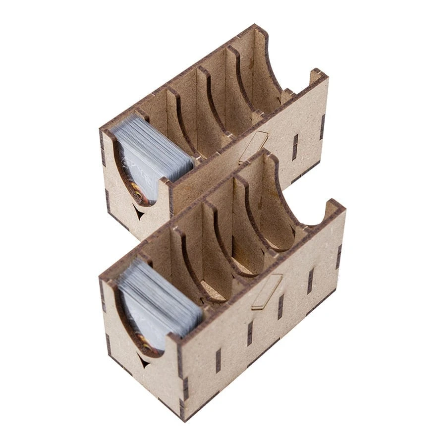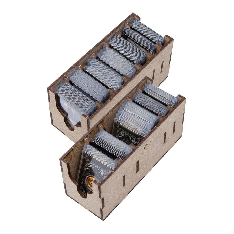 Designed to fit into the game box. Designed for both sleeved and unsleeved cards.