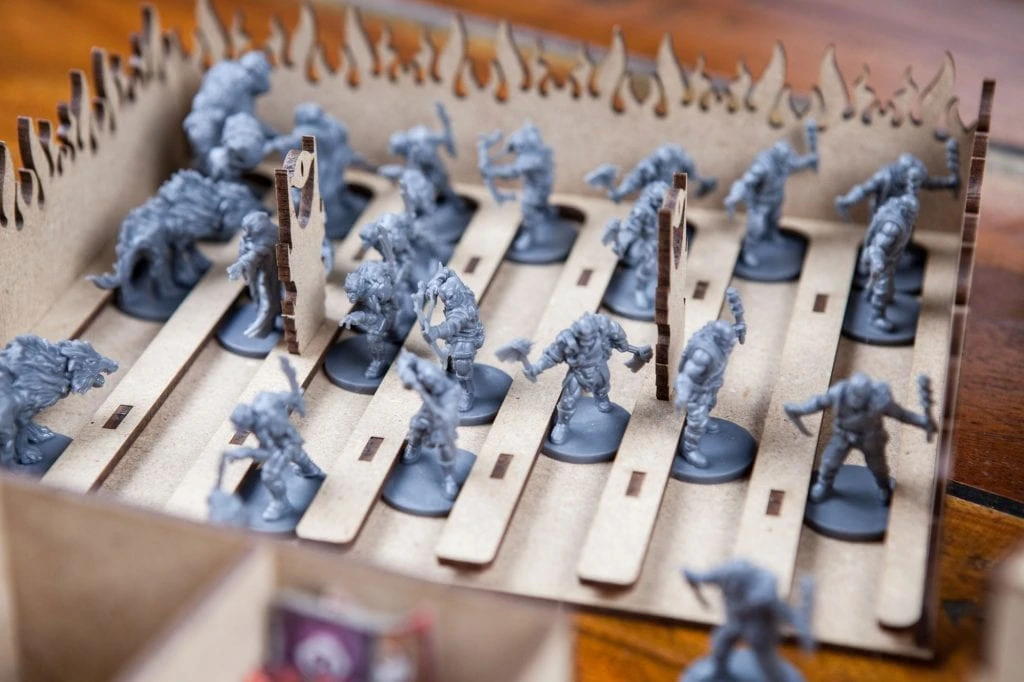 • 1x “ready to play” token holder with spaces for accessories, standees and banners;