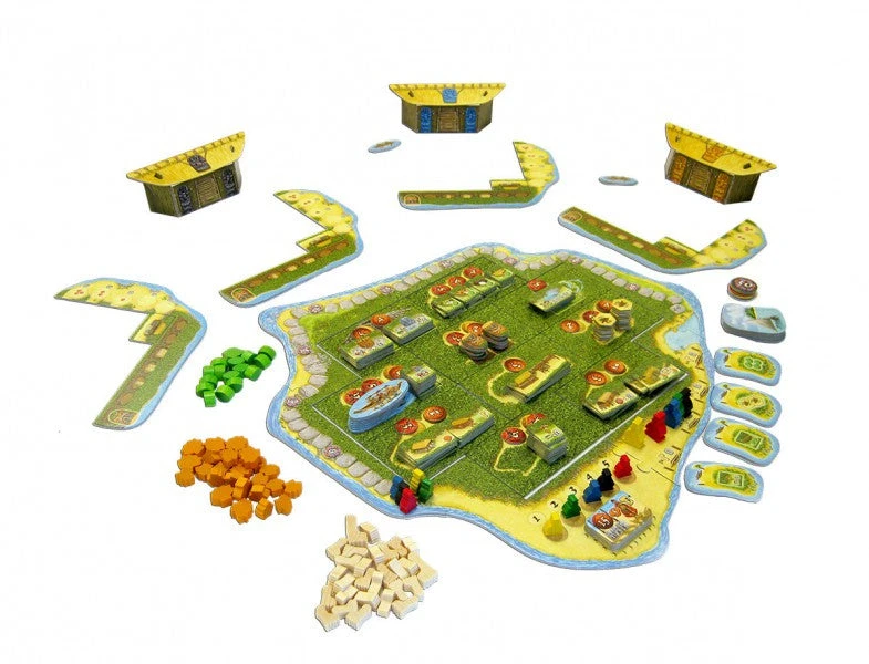 In Hawaii, players must make use of their limited resources to score points by growing their villages and exploring the surrounding islands. Your chieftains move around the board to purchase new tiles for their villages, hopefully grabbing the best deals before their opponents. Three different currencies are used to pay for these trips, so make sure you don’t run out of any of them too quickly. Players are also rewarded for providing for their people (measured essentially by how much they bought on a given turn), but your meager income shrinks as the game goes on. Players will have to balance a number of ways to score points to secure their victory.